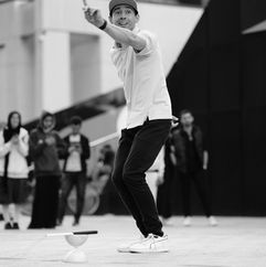 Fabian's performance with the diabolo is an explosion of precision and incredible skill. He has tremendous energy and total control of the object, throwing multiple diabolos into the air and manipulating them at incredible speed while maintaining absolute accuracy in all his throws.